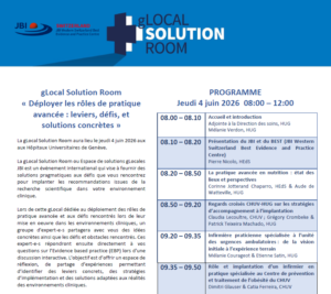 Le BEST organise la prochaine édition de la JBI gLocal Solution Room le mercredi 5 juin 2024 le matin à Genève aux HUG. Le programme et le formulaire d’inscription seront disponibles en février.